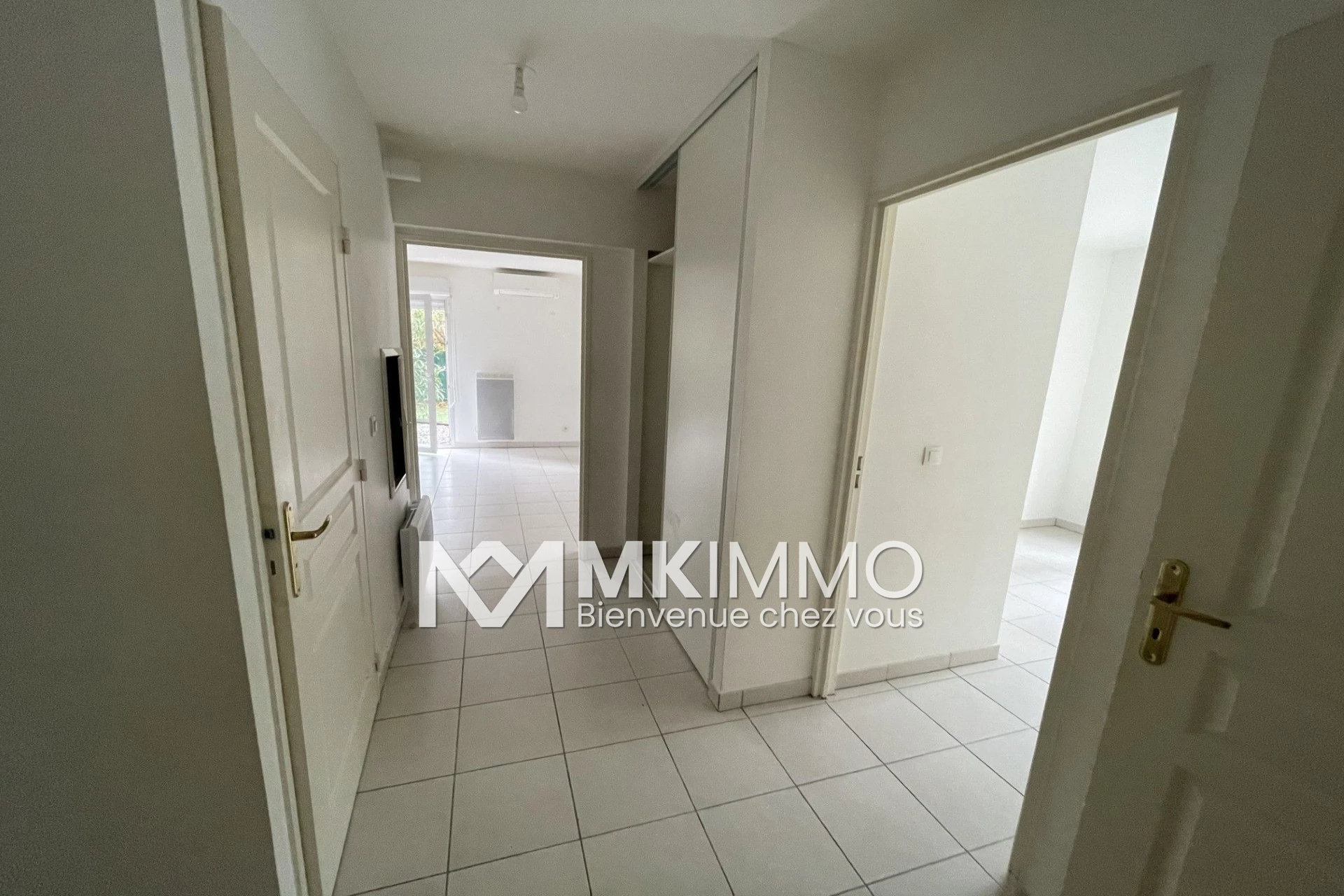 It features an entrance hall, a living room with an open-plan fully equipped kitchen opening onto a lovely 18m² terrace and corner garden, 2 bedrooms with built-in wardrobes, a bathroom, and a separate toilet!