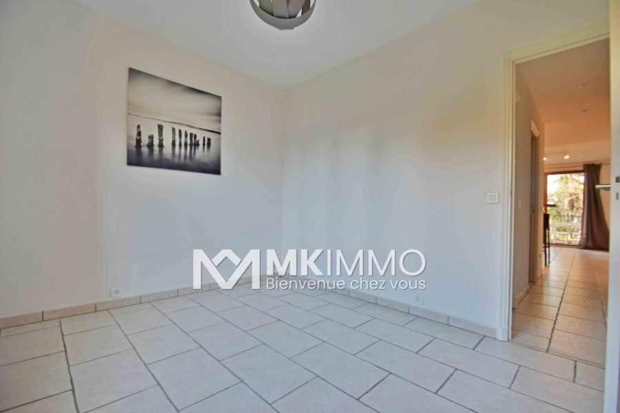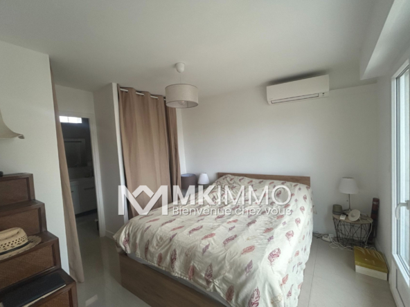 Séjour cuisine US entièrement équipée, chambre avec placard et salle de bain avec douche à l’italienne. Belle et grande terrasse sud donnant sur jardin et vue mer imprenable. garage en supplément à 150 ¤. Disponible immédiatement Garanties exigées.